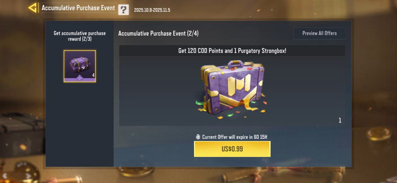 با خرید آفر 0.99 دلاری افر جدید کالاف دیوتی موبایل ،120 تا سیپی  به اکانت بازی شما افزوده خواهد شد.